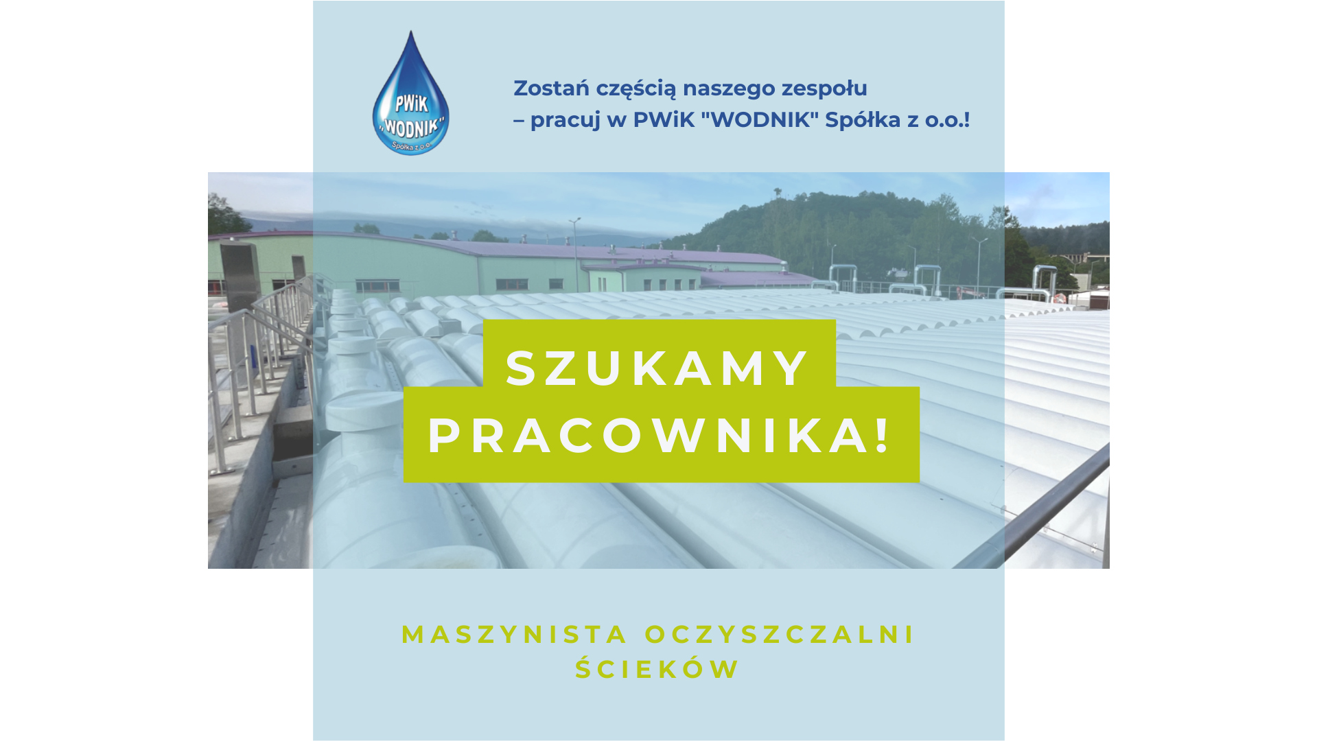 Przedsiębiorstwo Wodociągów i Kanalizacji „WODNIK” Sp. z o.o., poszukuje pracowników na stanowisko:
